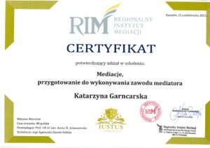 Ukończyłam aplikację radcowską przy Okręgowej Izbie Radców Prawnych w Rzeszowie i uzyskałam tytuł zawodowy radcy prawnego.