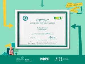 w 2022r. otrzymałam certyfikat Kancelaria Przyjazna Dziecku nadany przez Akademię Dobrego Rozstania – w uznaniu za wdrażanie i propagowanie Standardów Pomocy Dziecku w Sytuacji Rozstania Rodziców.